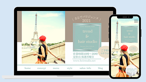 大阪の美容室のHP(ホームページ)のサンプルです。 ・施術事例やお店のコンセプトをしっかりと打ち出しができる仕様のため、新規の集客に効果が期待できます。 ・求人についても、お店の情報や、どういったお店なのかを知っていただくことで求人の採用率もアップします。求人情報などと併用することで求人広告の効果を最大化できます。